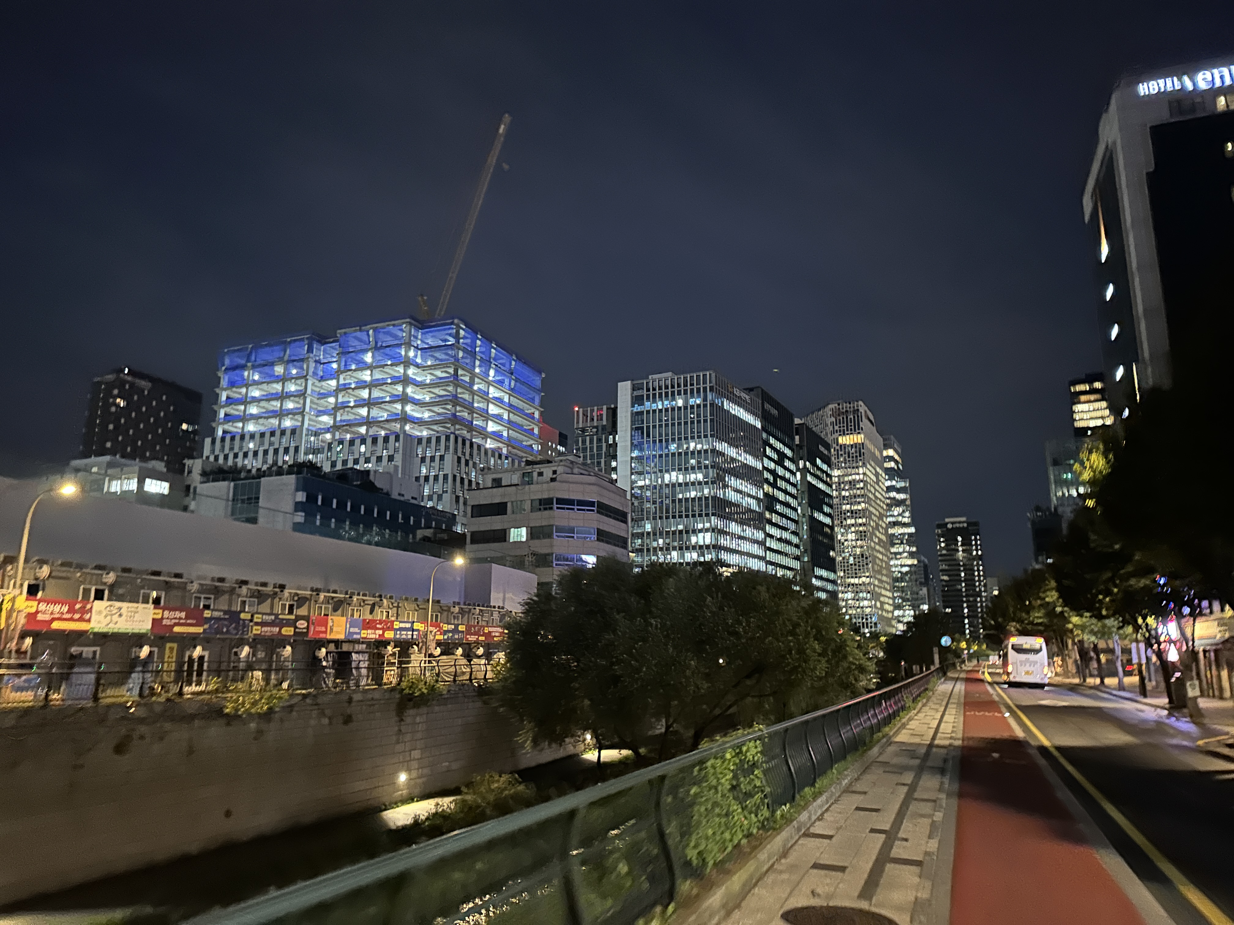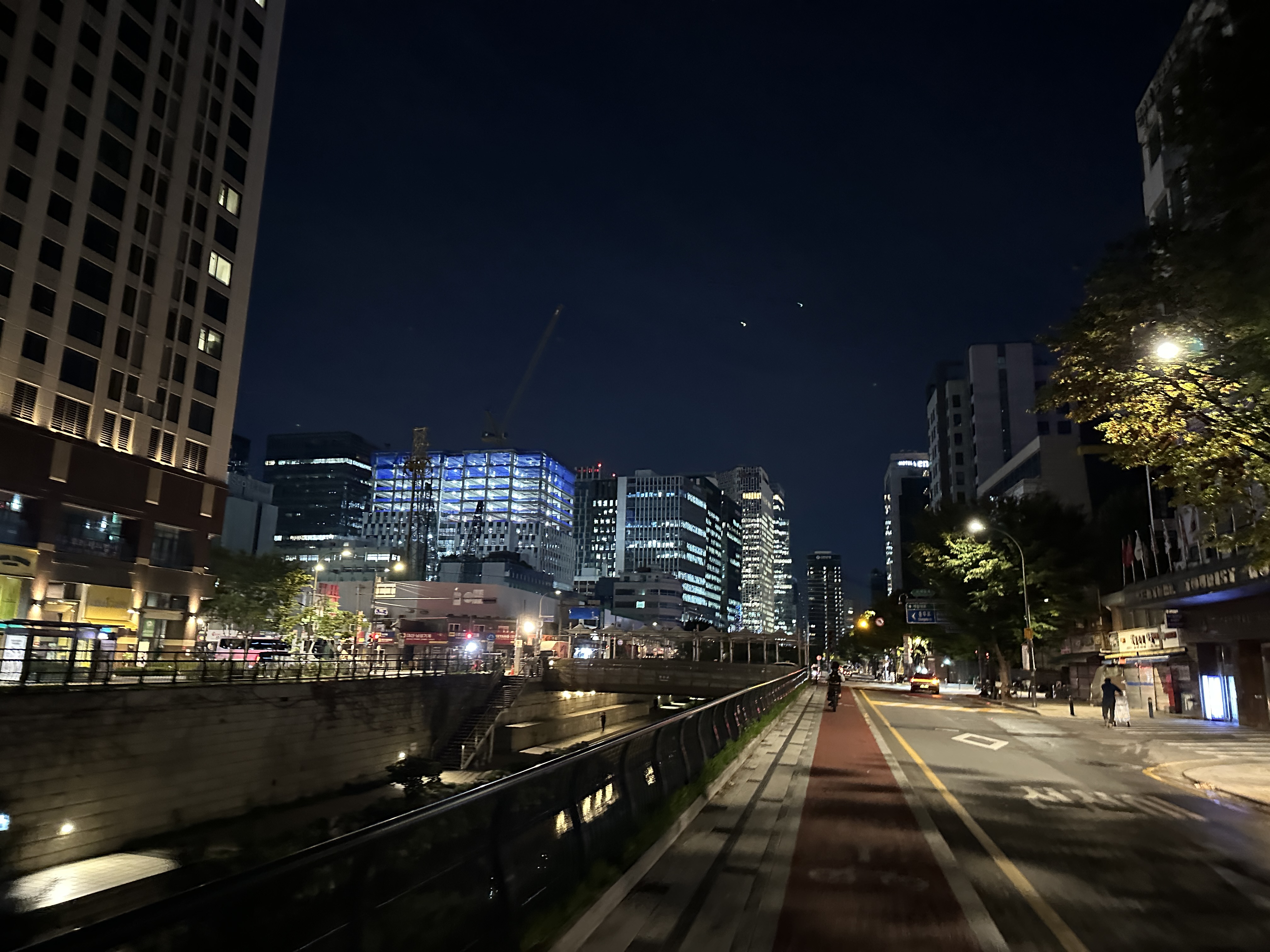 | 清渓川(夜景・ライトアップ) | 絞り優先(A/Av) | 200-800 | f/5.6 - f/11 | カメラ任せ | 三脚推奨。水面に映るリフレクションを活かす。絞り値で光芒の出方を調整する。 |