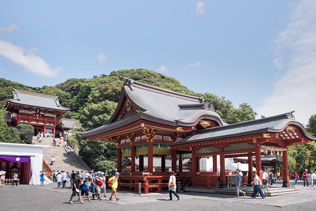 약 120년 후인 1180년(治承4年), 源頼朝가 鎌倉幕府를 세우면서 신사를 현재의 위치로 이전(遷座)하였으며, 이후 무사들의 수호신으로서 큰 역할을 담당하게 됩니다.