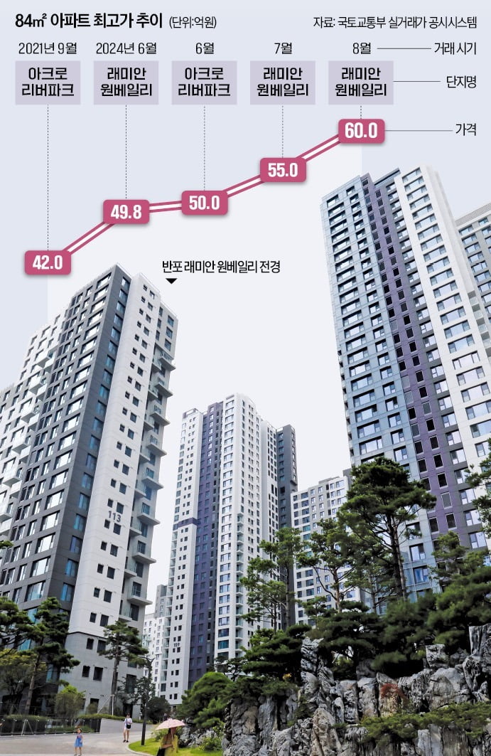 • 매매가 기준: 최소 30억~50억 원 (반포자이, 아크로리버파크, 래미안퍼스티지 등)