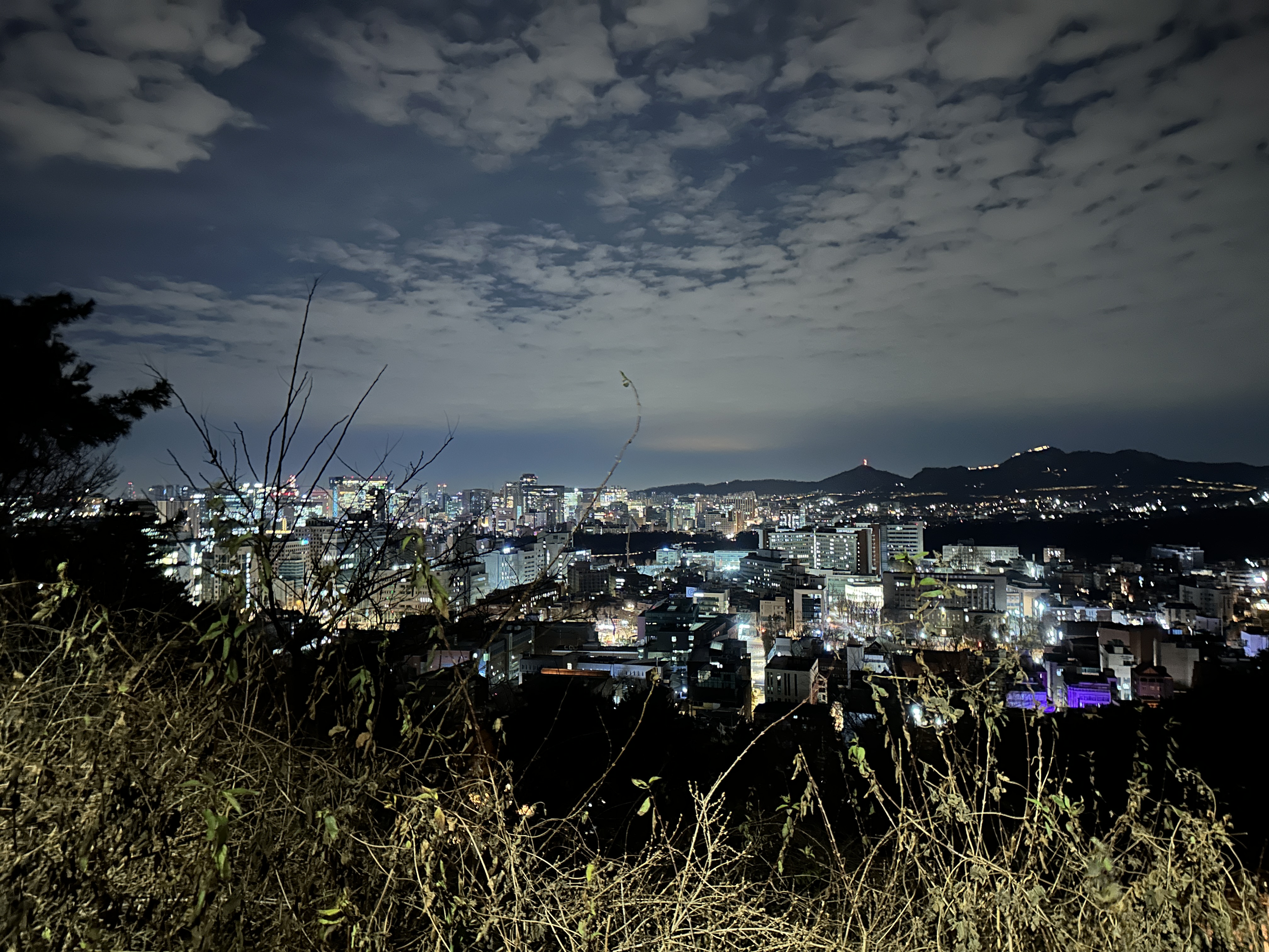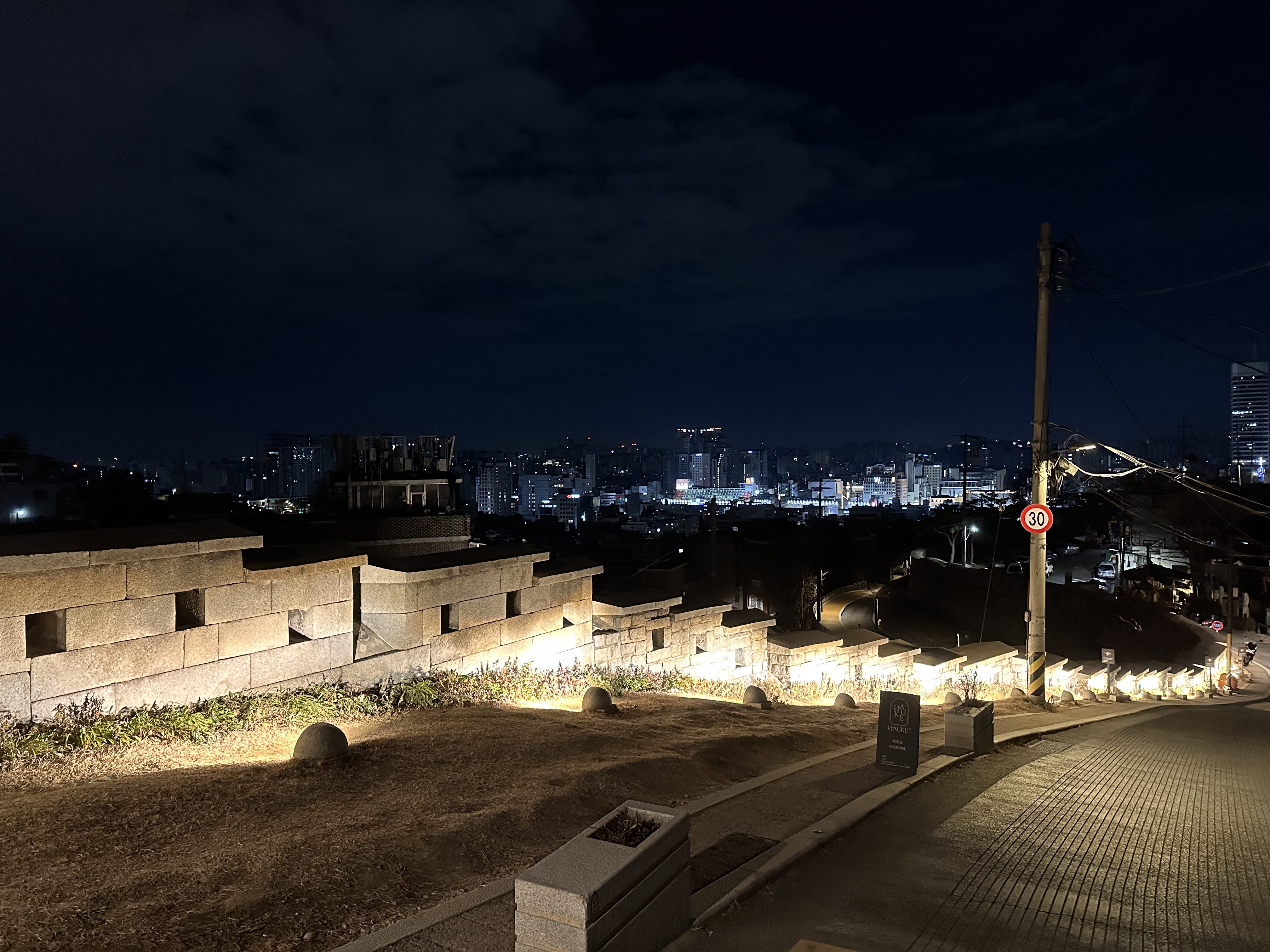낙산공원 정상에서 내려다본 겨울 밤의 서울 전경. 서울 시내를 가로지르는 빌딩 숲과 멀리 남산타워의 불빛까지 한눈에 들어오는 파노라마 야경은 낙산에서만 누릴 수 있는 장관입니다. 겨울철에는 공기가 맑아 도시의 불빛들이 더욱 선명하게 빛나며, 낮보다 일찍 찾아오는 저녁 어스름부터 야경까지 연인들의 데이트 코스로도 인기가 많습니다. 탁 트인 전망 덕분에 삼각대를 세우고 야경을 촬영하는 사진애호가들도 자주 눈에 띕니다. 특히 해가 완전히 진 이후에는 서울 곳곳의 불빛이 반짝여 마치 보석을 뿌려놓은 듯한 도시 풍경을 포착할 수 있습니다.