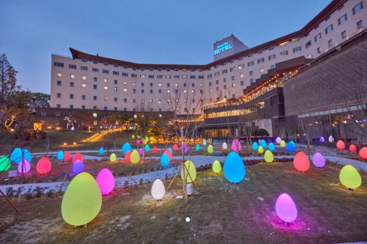 경주 코오롱호텔 전경 (호텔 야외정원 ‘연하원’에 조성된 알 조명)