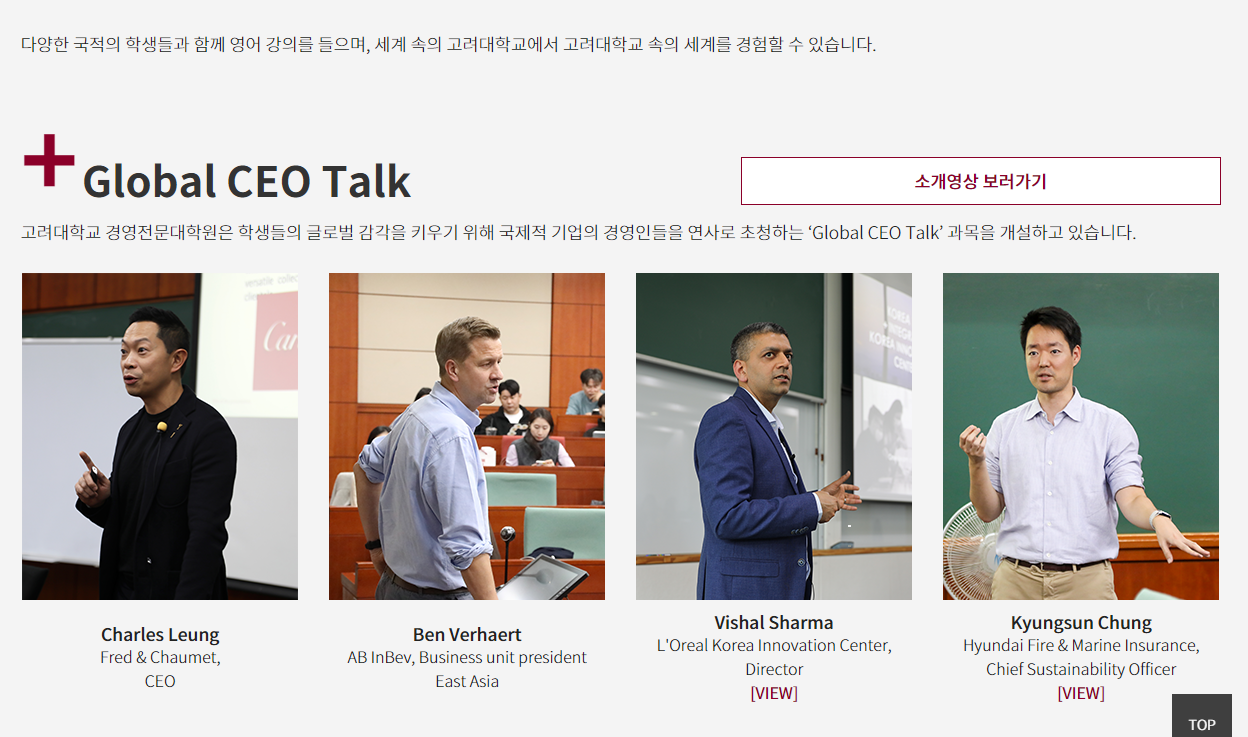 - 대상: 국내외 기업에서 경력을 쌓은 전문가 및 관리자