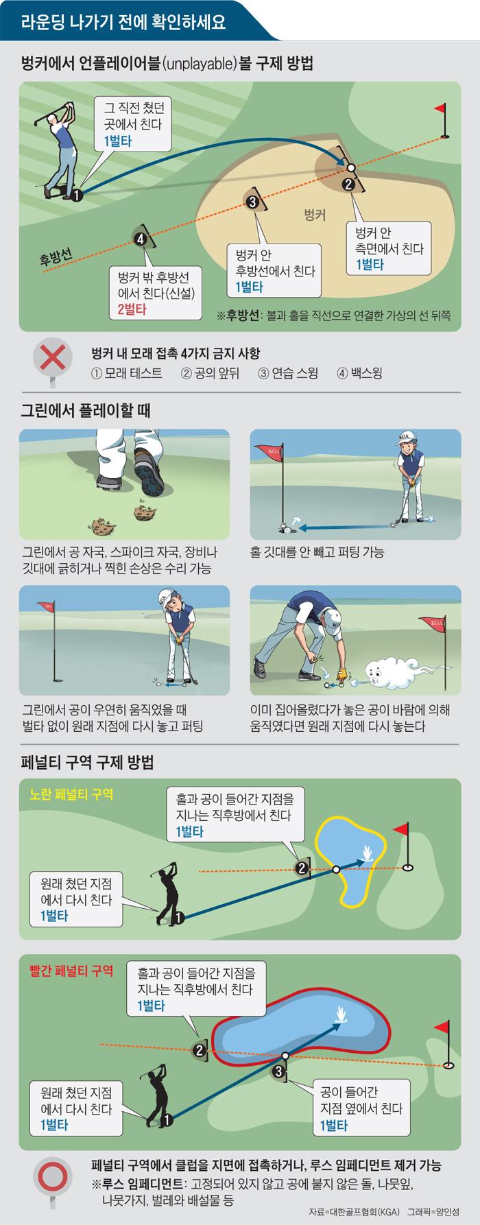 본 글이 초심자분들이 골프 규칙을 이해하고 실전 플레이에서 이를 원활히 적용하는 데 유용한 길잡이가 되기를 바랍니다.