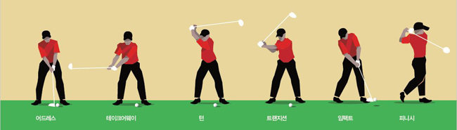 • 전체 스윙 동작을 여러 단계(백스윙, 다운스윙, 임팩트, 팔로우스루)로 나누어 집중 연습
