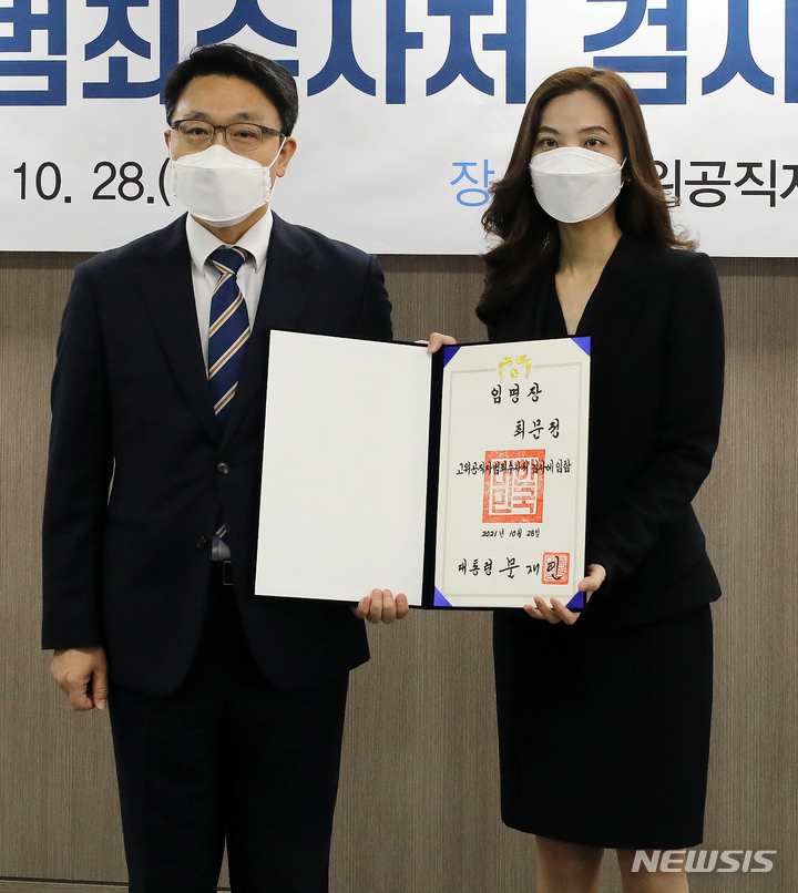 최문정 검사는 2021년 10월 28일, 고위공직자범죄수사처(공수처)의 평검사로 임명되었습니다. 공수처는 대한민국의 고위공직자의 부패 및 권력형 범죄를 전담하기 위해 2021년 설립된 독립 수사기관으로, 검찰과 경찰의 수사권을 견제하고 보완하는 기능을 수행합니다.