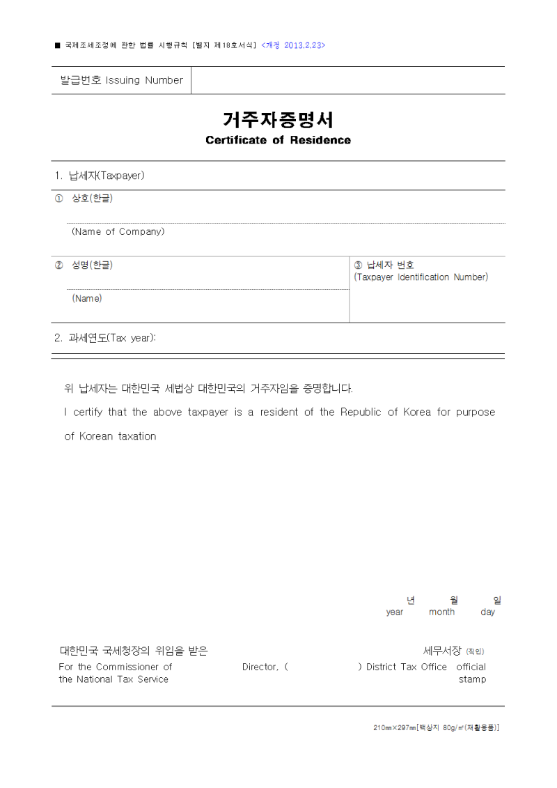 납세자 거주지 증명서는 특정 국가에서 세금 문제를 해결하거나, 대한민국 거주자임을 증명하기 위해 필요한 서류입니다. 구글 애드센스와 같은 플랫폼에서 세금 처리를 위해 요구되며, 특히 싱가포르와 같은 국가에서는 이 서류가 필수적입니다.