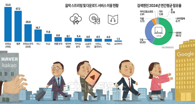 • 국내 플랫폼 영향력이 전반적으로 감소하며 검색 시장, 음원 스트리밍, AI 기술력에서 글로벌 기업과의 격차가 커지는 상황.