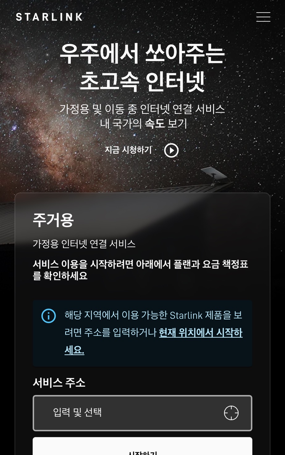 * 공식 사이트 접속: Starlink 한국 홈페이지에 접속합니다.