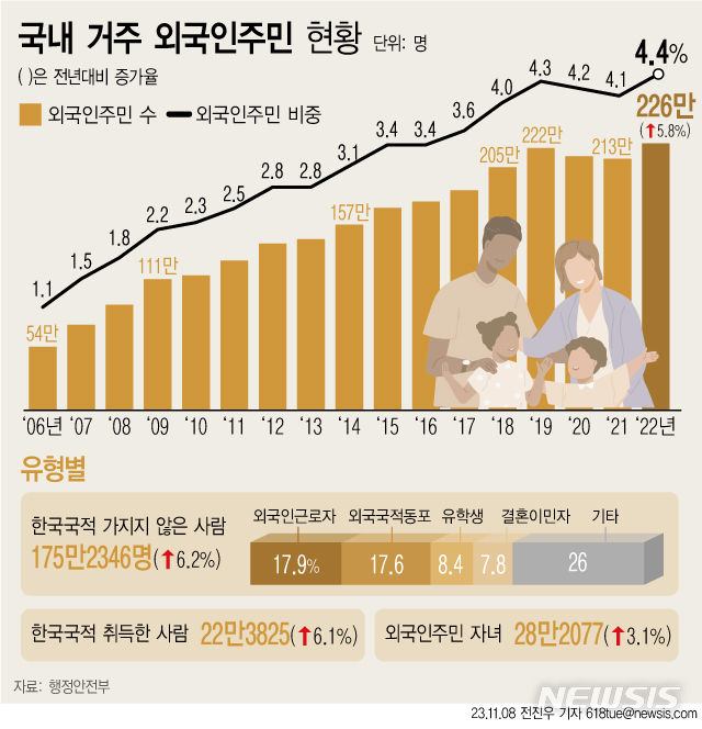 참고 자료: 법무부 출입국·외국인정책본부 통계월보, 통계청 이민자 체류실태 및 고용조사 2024 결과, 언론 보도 (가톨릭신문, 조선일보  등).