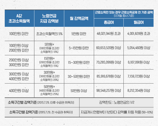 A값 기준을 상향 조정하거나 감액 비율을 낮추어 고령층의 경제활동을 장려해야 합니다. 또한, 감액된 연금액을 추후 반환하거나 추가 보상 제도를 도입하는 방안도 검토될 필요가 있습니다.