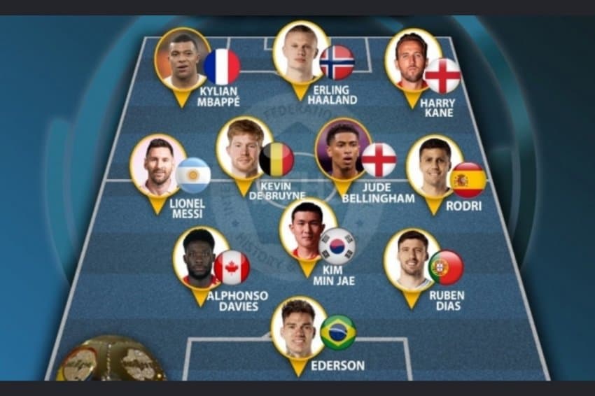 ▲미드필더=리오넬 메시(인터 마이애미) 주드 벨링엄(레알 마드리드) 케빈 더브라위너(맨시티) 로드리(맨시티)