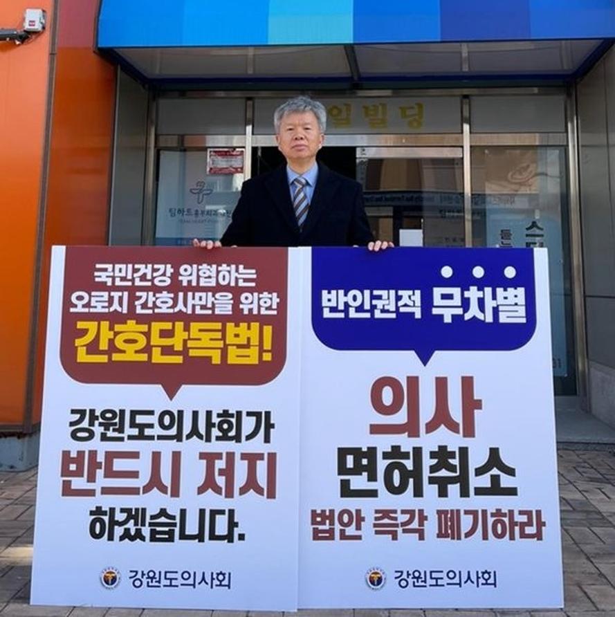 그는 대한의사협회 비상대책위원회 및 강원도의사회 비상대책위원회를 이끌면서 간호법이 전체 의료인의 권한·역할을 조정하는 “별도의 의료법”과 마찬가지라는 지적을 해왔다. 또한 “의료 현장 혼란을 막기 위해선 간호법 제정을 막아야 한다”는 입장을 고수하며, 이 사안과 관련한 대국회·대정부 투쟁에도 적극적으로 나선 바 있다.