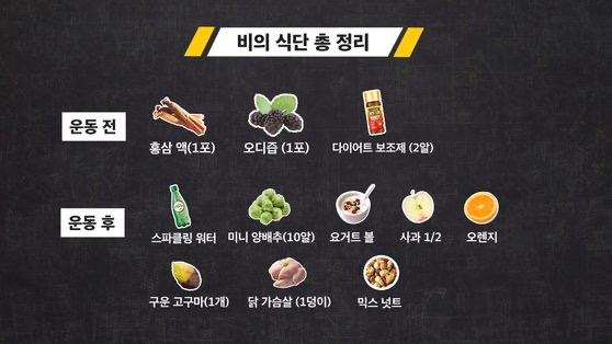 • 배가 너무 고프다면, 물이나 차를 마신 후, 그래도 허기가 심하면 삶은 달걀 1개, 두유 1팩(무가당) 정도로 최소화
