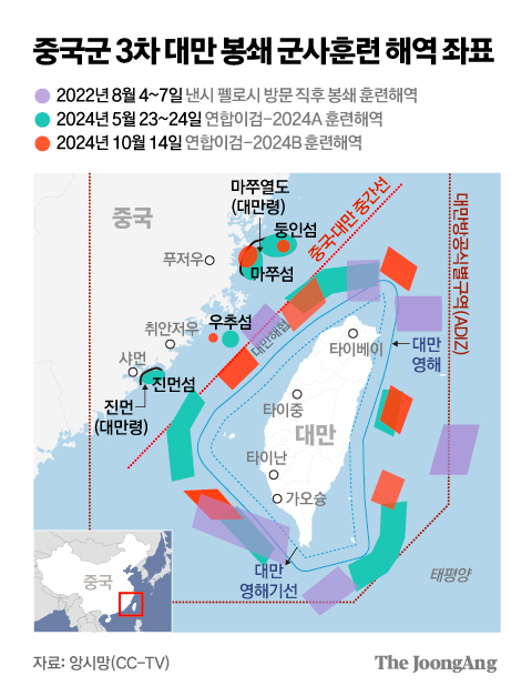 • 해상 봉쇄 작전: 해양경찰 함정과 해군 전력이 대만 주변 해역을 순찰·봉쇄하며, 대만으로의 해상 물자 및 인력 유입을 차단하는 전략을 수행한다.