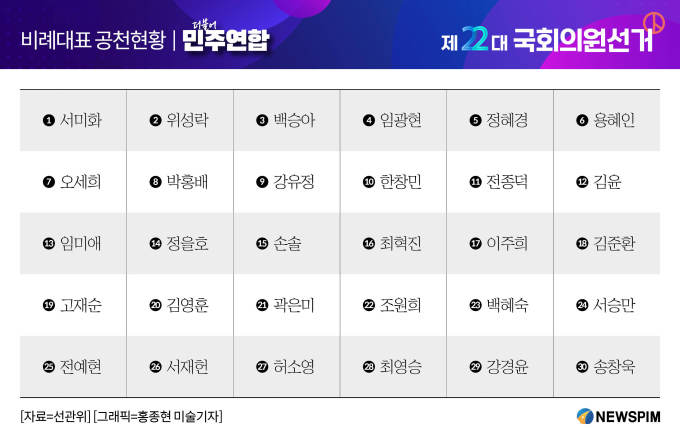 더불어민주연합 비례대표 명단 및 순번