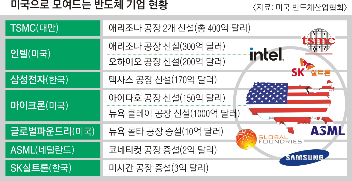 • 목적: 반도체 제조를 미국으로 회귀시키고, 글로벌 공급망 안정화.