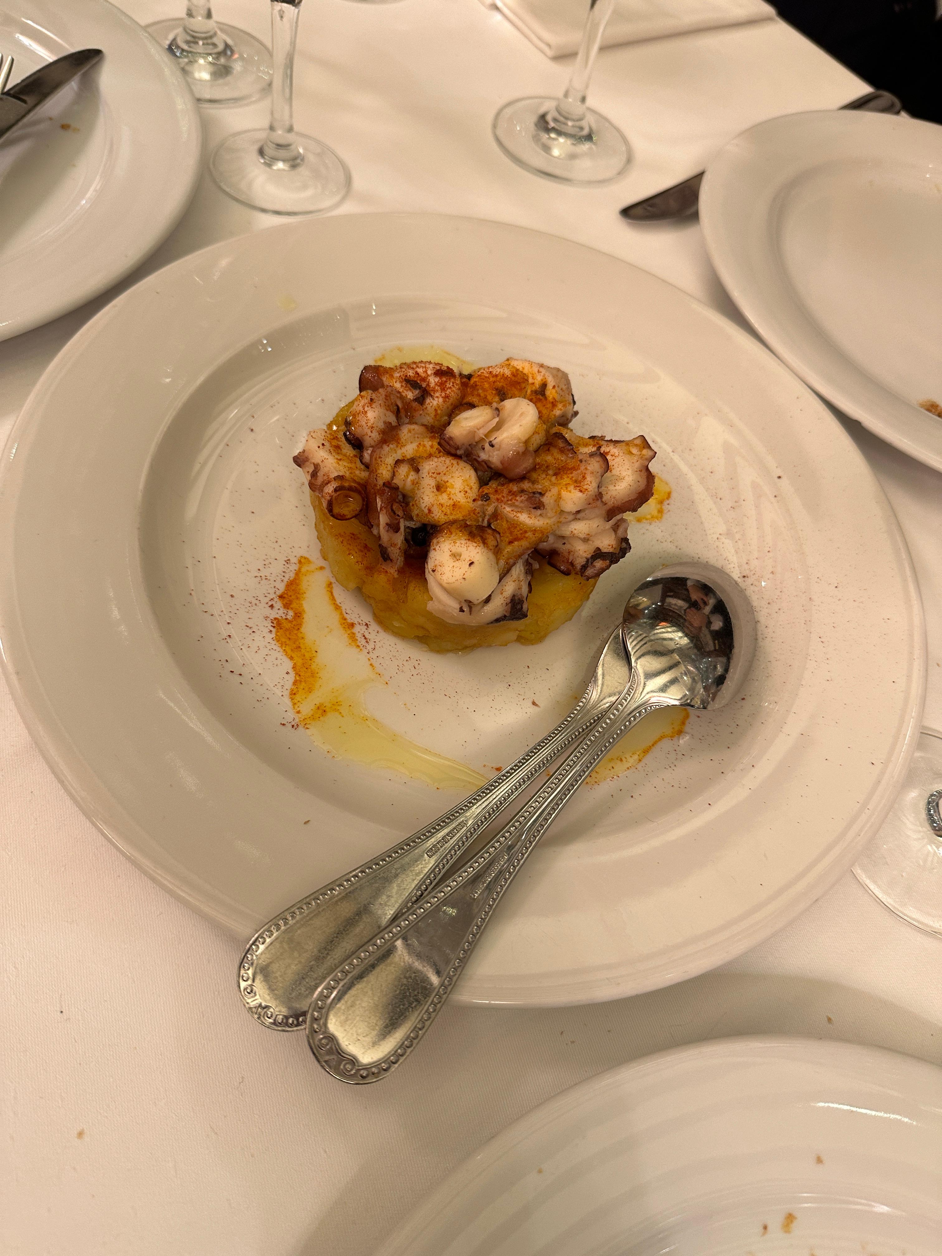 • 부드럽게 익힌 문어에 파프리카 파우더, 올리브오일을 곁들여 풍미가 뛰어나며, 감자 위에 올려 내는 스타일이 대표적입니다.