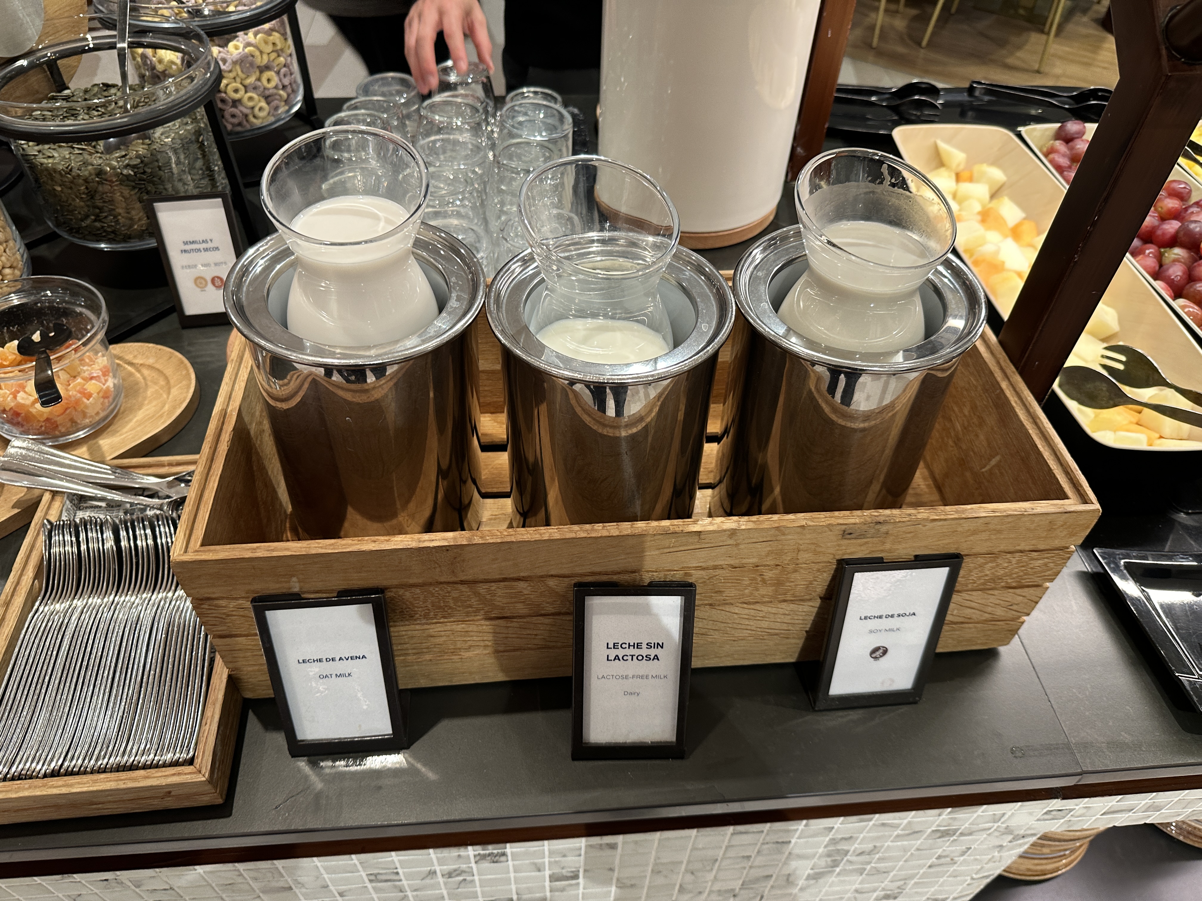 • 일반 우유, 무지방 우유, 락토스 프리 우유, 두유(Leche de soja) 등 다양한 옵션이 준비되어 있습니다.