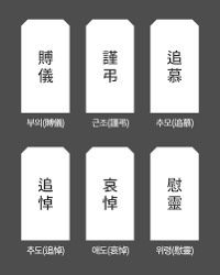 - 근조(謹弔): 고인의 죽음에 대해 삼가 슬픔을 표함.