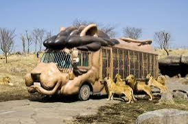 * 구조적 특징: 사자, 코끼리, 코뿔소 등의 형상을 한 버스는 양옆이 철망으로 되어 있어 공기가 통한다. 이는 맹수의 냄새와 숨결을 직접 느낄 수 있게 하며, 반대로 여름에는 덥고 겨울에는 추운 자연환경에 그대로 노출됨을 의미한다.