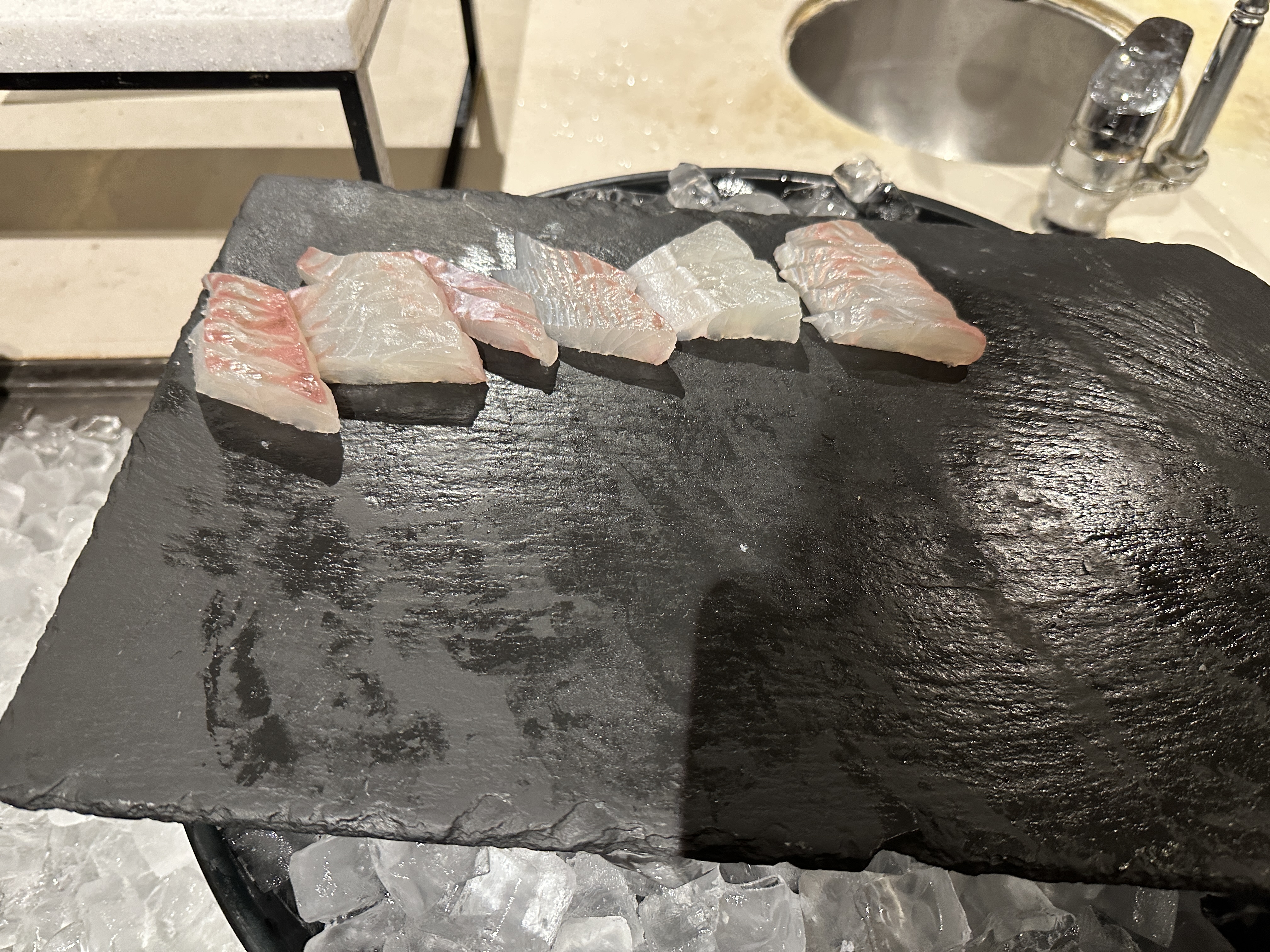 고급 일식 코너로, 신선한 생선과 세심한 손질이 돋보입니다.