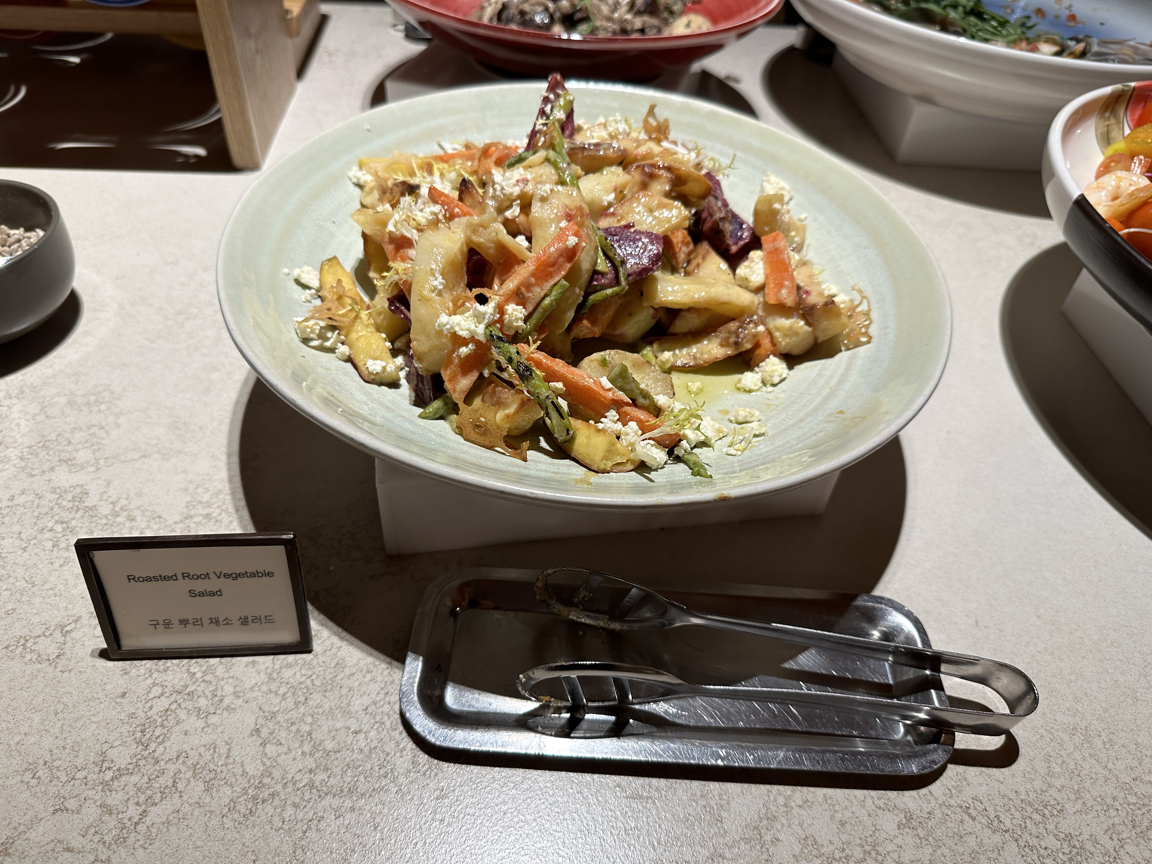 • 구운 뿌리채소 샐러드 (사진 포함): 고구마, 감자, 비트, 당근, 염소치즈