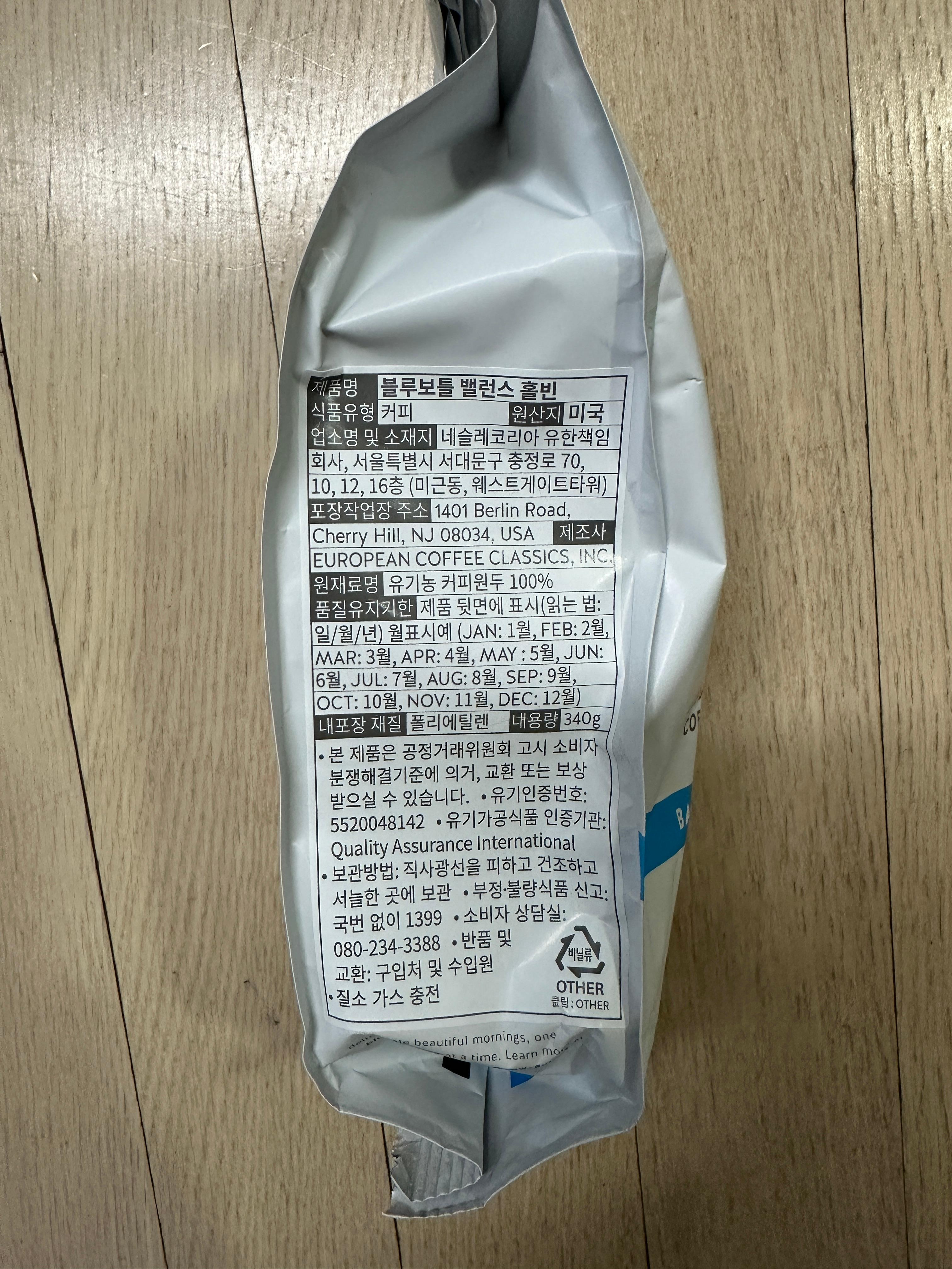 • 한글 스티커(수입 라벨)에는 원두 정보, 수입사, 유통기한(혹은 권장소비기간), 보관 방법 등이 기재되어 있습니다.