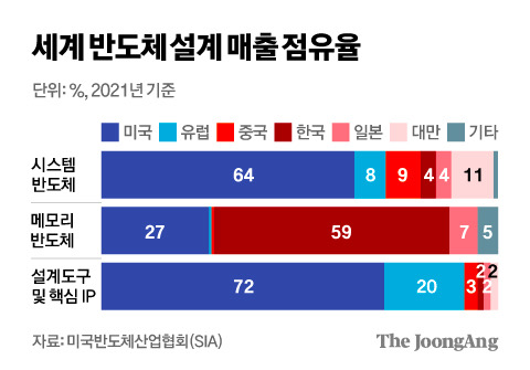 • 한국은 메모리 분야에선 세계 최고 수준이지만, 시스템 반도체(특히 CPU, GPU, AI 가속기 등) 분야는 상대적으로 취약한 구조입니다.