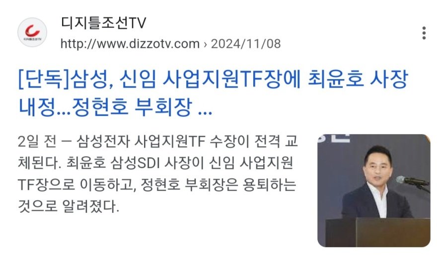 최윤호 삼성SDI 대표이사 사장(사업지원 TF장 후보) 상세 프로필