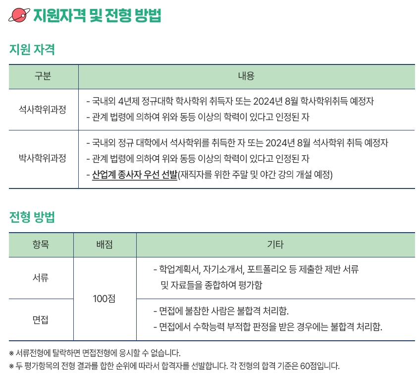 - 기간: 2년 석사 과정 (Full-time 및 Part-time)