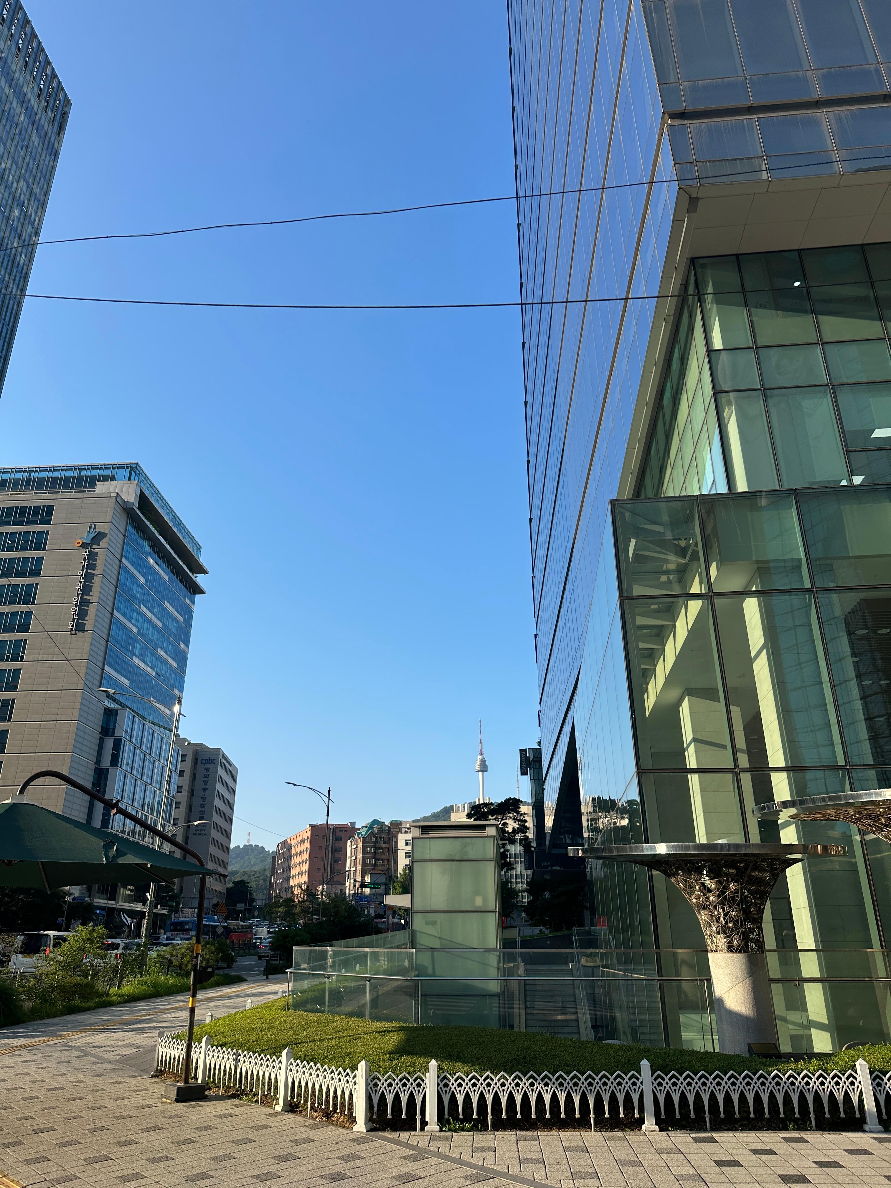 고개를 들어 바라보면 빌딩 사이로 남산타워가 보인다. 도시의 한복판에서 저 멀리 우뚝 솟아 있는 남산과 그 위의 타워는, 마치 밀림 속 유일하게 남은 자연의 봉우리 같다. 사방은 각지고 차가운 구조물 투성이지만, 그 사이로 언뜻언뜻 보이는 초록의 나무와 푸른 하늘 조각들이 눈에 들어온다. 딱딱한 콘크리트 틈바구니마다 작은 생명이 고개를 내미는 것을 볼 때면, 유리와 강철의 밀림에도 숨쉬는 생명이 있다는 사실에 새삼 가슴이 뛴다.
