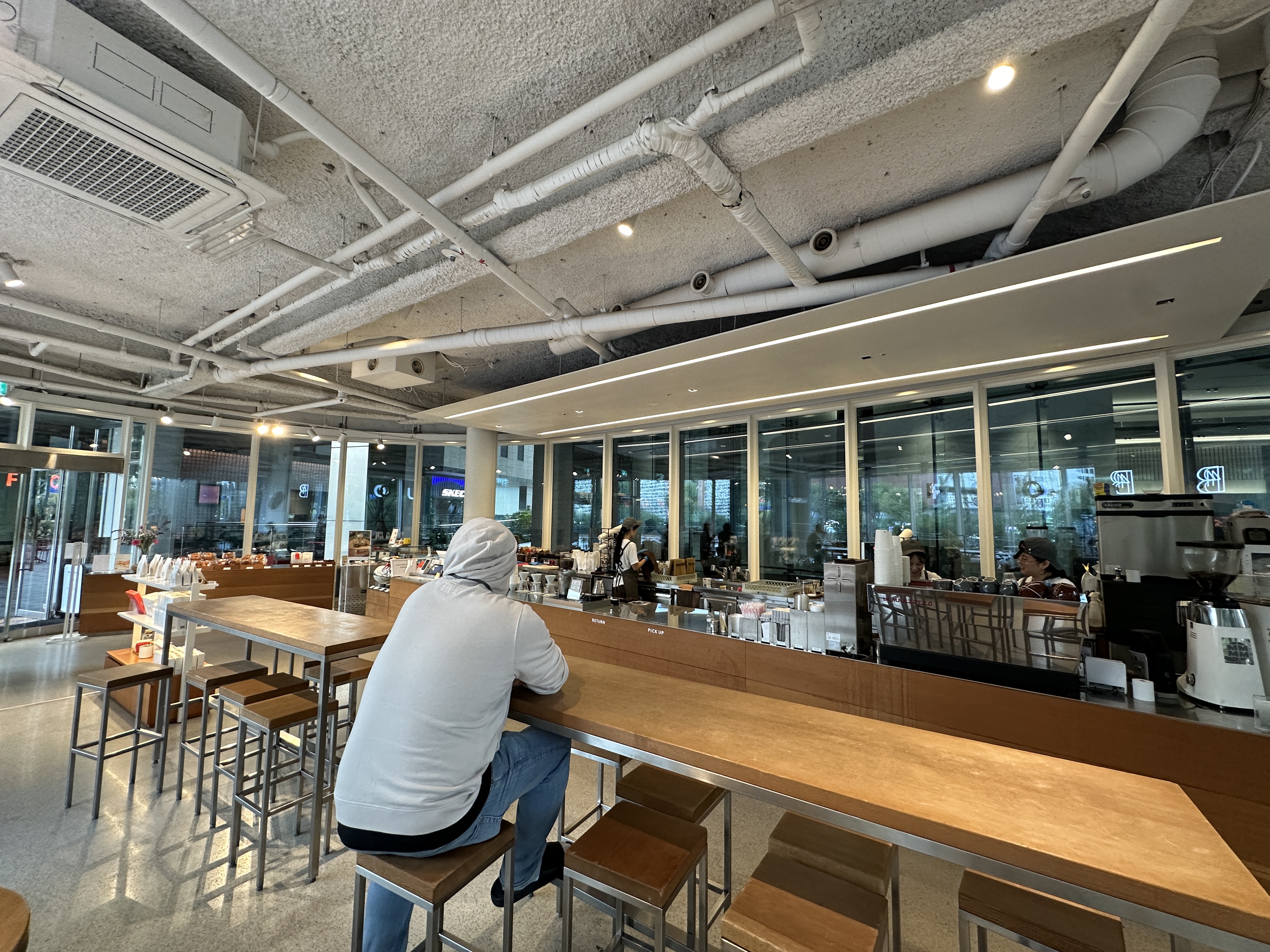 포비 을지로점에 방문했을 때의 첫인상은 청계천이 보이는 멋진 뷰와 통창 덕분에 매장이 굉장히 넓고 개방감이 좋다는 것이었어요. 을지로3가역 1번 출구에서 도보 3분 거리로 접근성도 뛰어나고, 평일엔 아침 7시 30분부터 운영해 출근 전에 간단하게 커피 한 잔과 베이글을 즐기기에 제격인 곳입니다. 저는 주말에 방문했는데, 평일에 비해 직장인 유동인구가 적어 여유롭게 힐링 타임을 가질 수 있었어요. 또, 시그니처 타워 1층에 위치하고 있어서 주차도 1시간 무료로 제공되니 자차 이용 고객에게도 편리합니다.