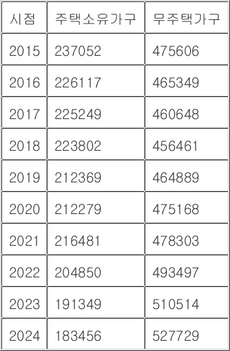 즉, 나라 전체로 보면 집 가진 가구는 더 늘고 있어요.