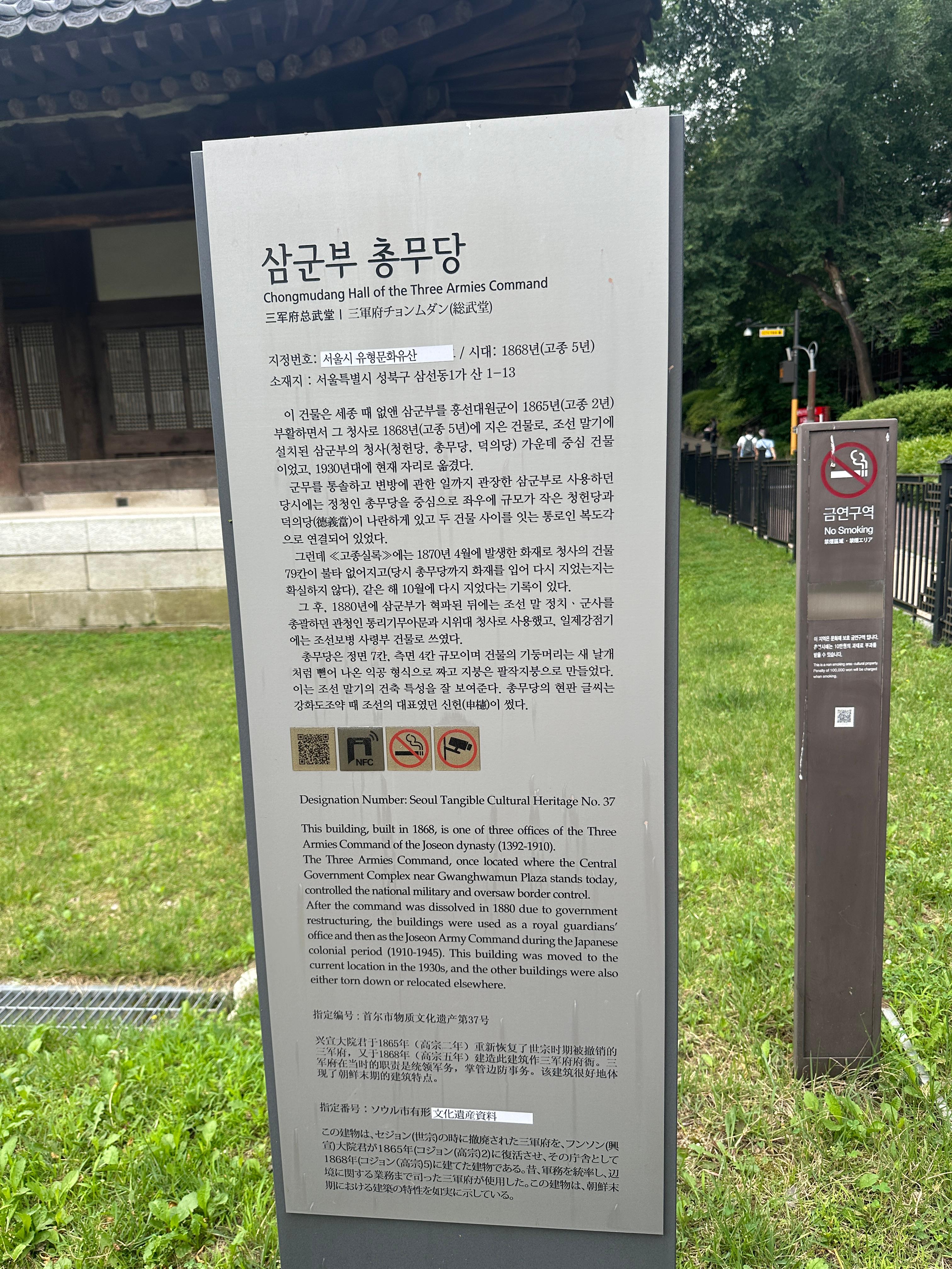 삼군부 총무당(三軍府 摠武堂)은 서울특별시 성북구 삼선동(4호선 한성대입구역 낙산방면)에 위치한 조선 후기의 대표적인 관아 건축물로, 서울시 유형문화재 제37호로 지정된 유서 깊은 문화유산이다. 이 건물은 본래 조선 후기 중앙 행정의 중심지였던 광화문 인근에 위치한 삼군부 청사의 일부였으며, 국방과 군무(軍務)를 담당하던 중요한 기관으로 기능하였다. 특히 흥선대원군 집권기인 1868년(고종 5년)에 건립된 이래, 수많은 역사적 변천과 함께 현재의 위치로 이전되는 과정을 거쳤다.