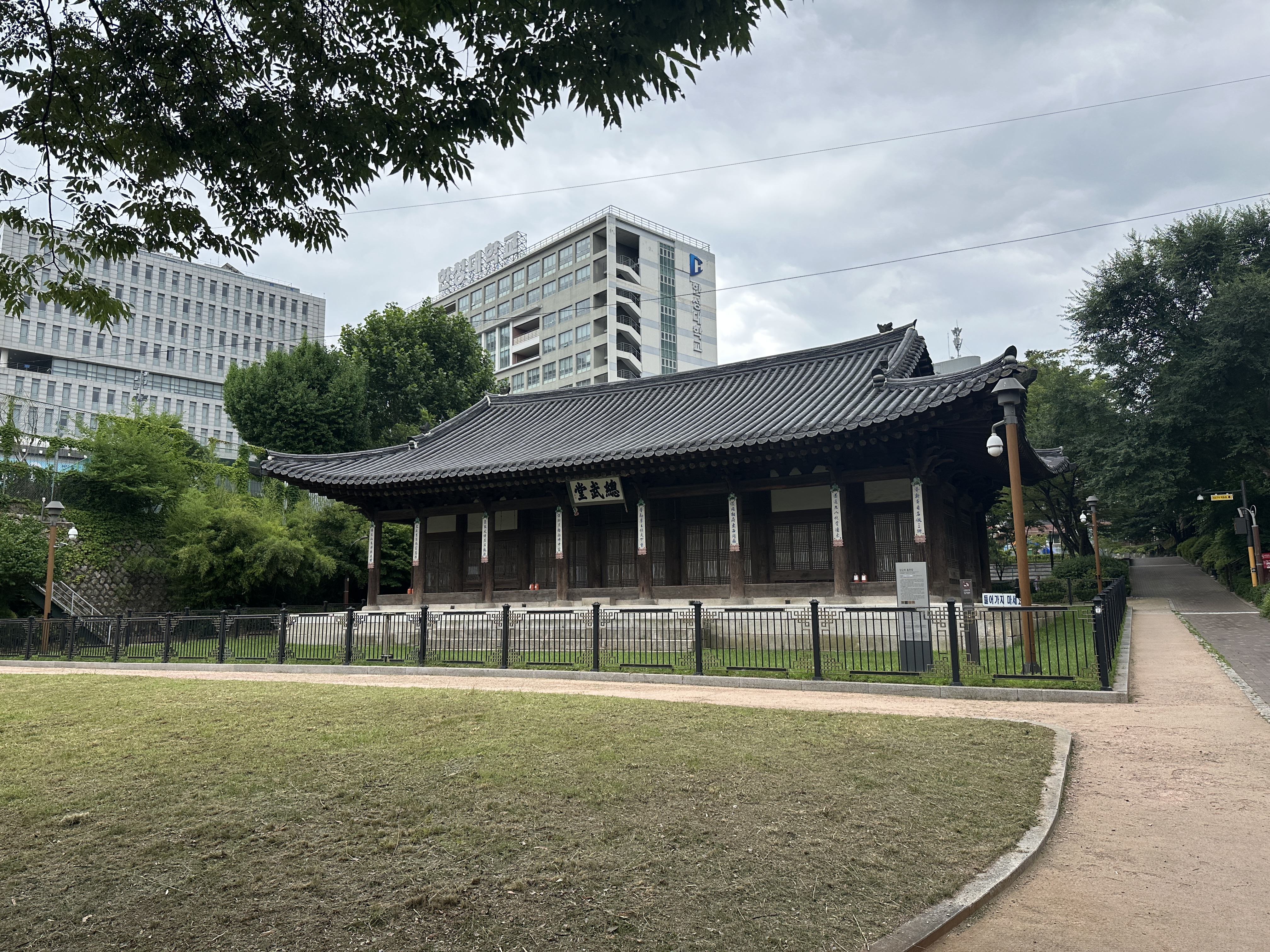 현대의 도시환경과 역사적 건물이 공존하는 삼군부 총무당의 주변 환경은 특별히 주목할 만하다. 주변에 현대식 건물들이 들어서 있지만, 총무당 자체가 자리 잡은 공원형 부지는 잘 관리된 녹지와 함께 역사적 분위기를 고스란히 느낄 수 있도록 조성되어 있다. 도시의 번잡함 속에서도 조용하고 평화로운 분위기를 유지하며 시민들에게 휴식과 사색의 공간을 제공한다.