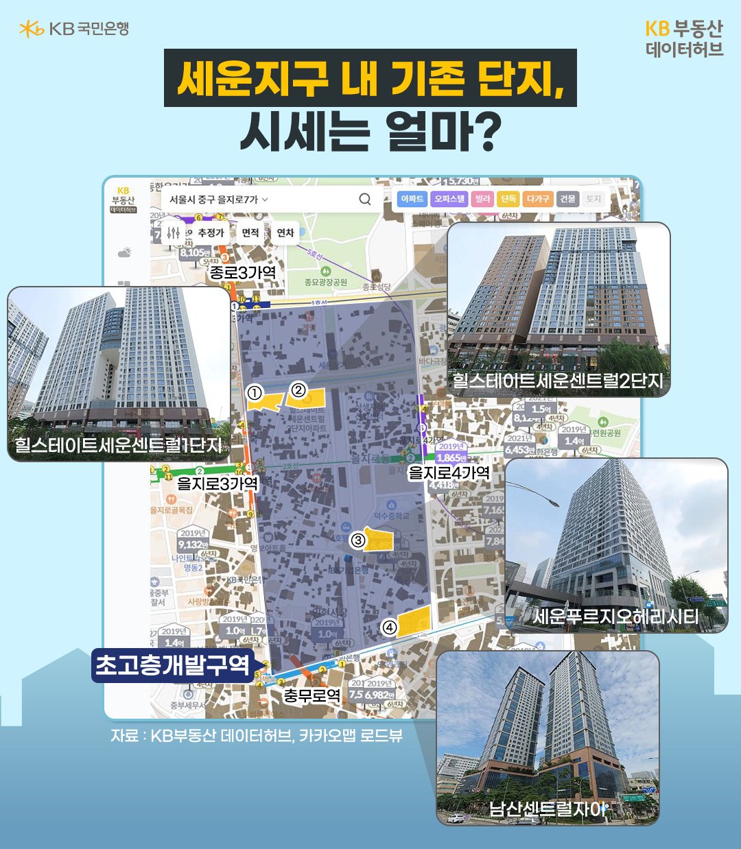 • 을지로3·4가역 생활권으로, 중소형 평형 위주의 주상복합 단지.