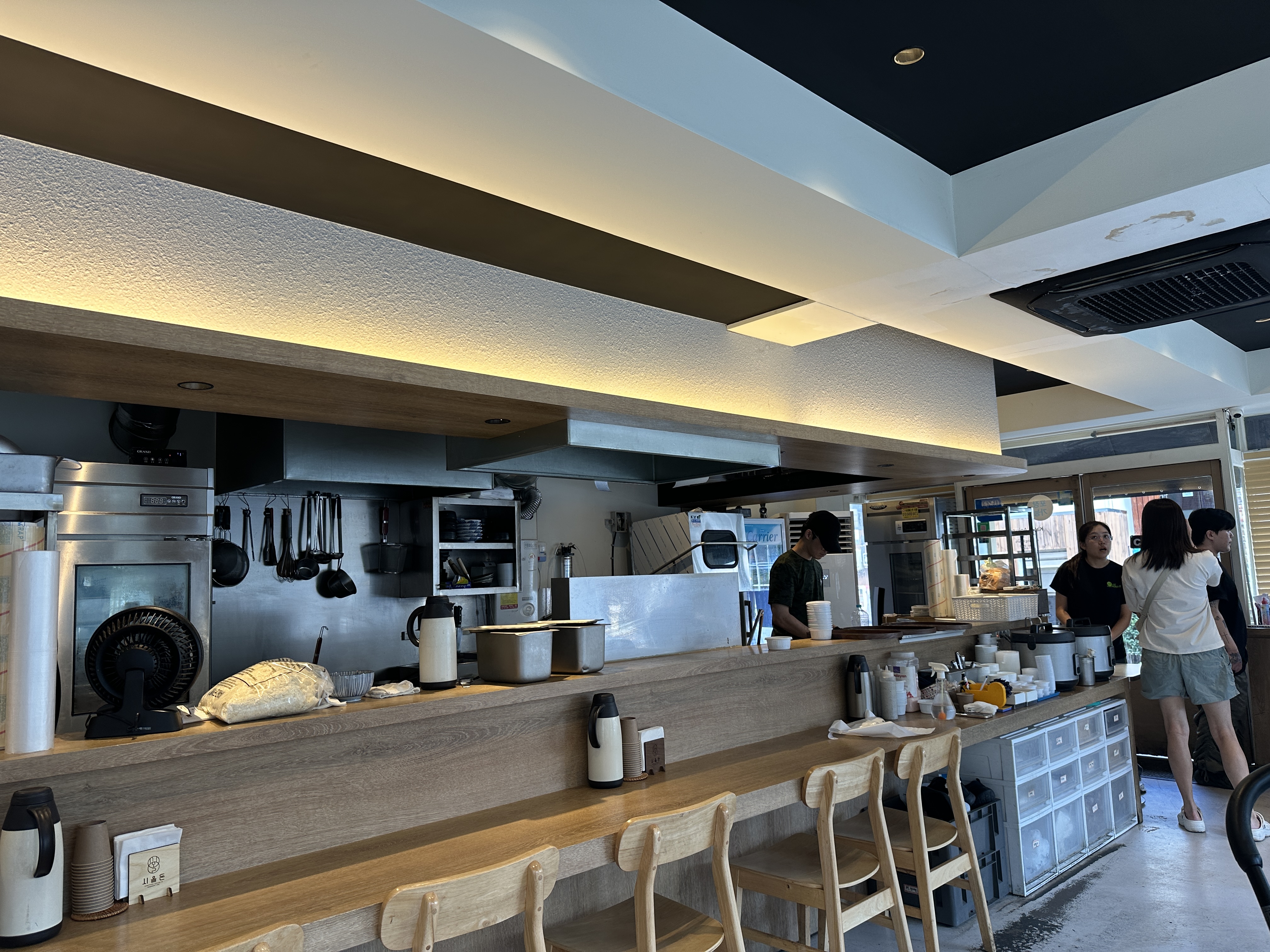 문을 열고 들어서자 내부는 우드톤 가구와 화이트 조합의 인테리어로 아늑하고 깔끔한 분위기였습니다. 넓지는 않지만 오픈 키친 형태로 조리 공간이 훤히 보이는데, 덕분에 위생에 대한 신뢰감이 들었고 직원분들이 만드는 과정을 바로 볼 수 있어 흥미로웠어요 . 좌석 배치는 주방을 둘러싼 바 테이블석과 창가쪽 소형 테이블로 이루어져 있었습니다. 바 자리에서는 쉐프님이 돈카츠를 튀기는 모습을 가까이서 지켜볼 수 있었고, 창가 좌석은 자연채광이 들어와 밝고 편안했어요. 전반적으로 실내 청결 상태도 매우 만족스러웠는데, 바닥이나 테이블에 음식 부스러기 하나 없이 정돈되어 있었고 개방형 주방임에도 불구하고 기름 냄새나 연기가 거의 느껴지지 않았습니다. 깨끗한 환경과 편안한 분위기 속에서 식사에 집중할 수 있었어요.