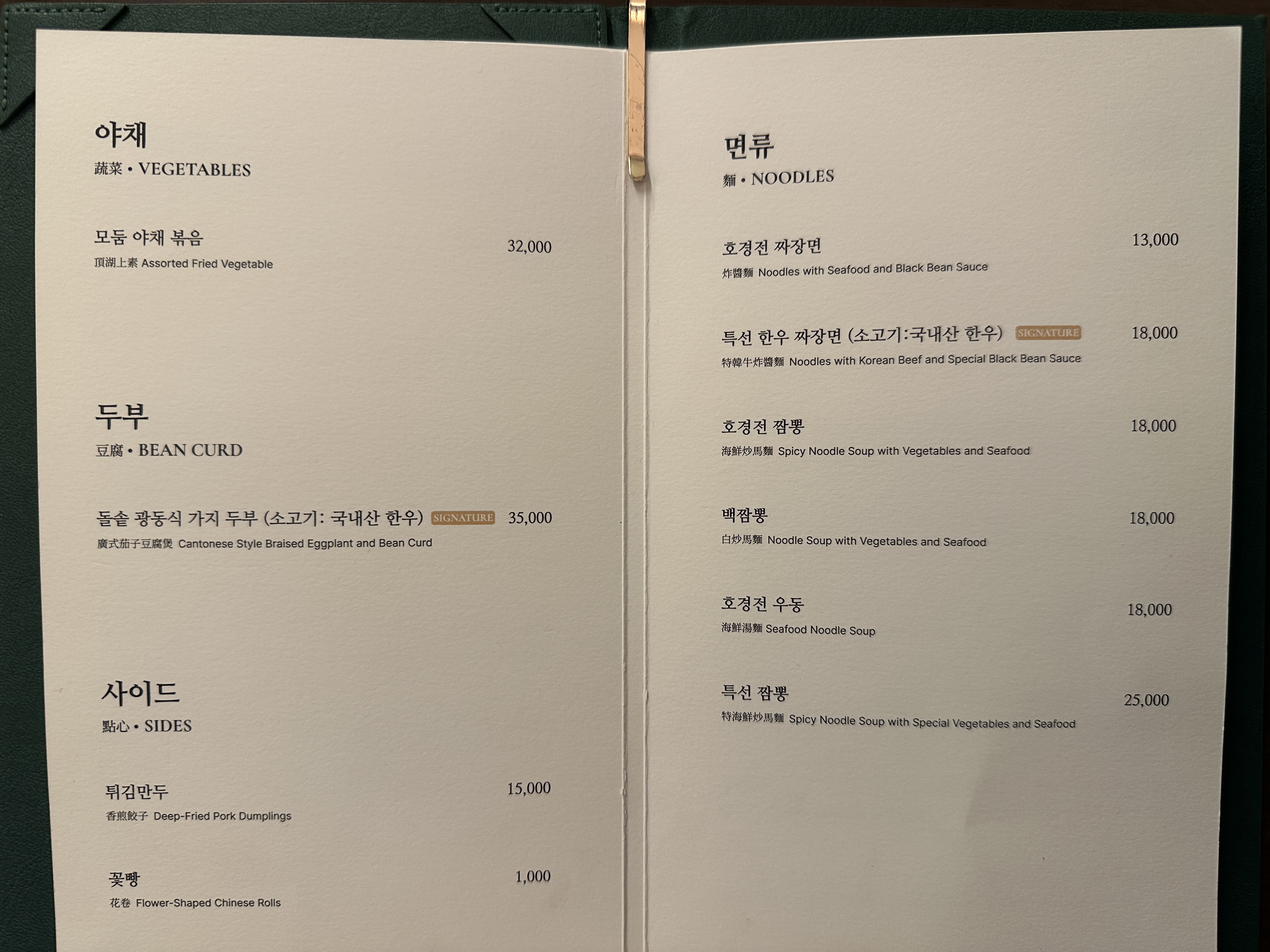 • 그 외 특선 짜장면, 유산슬, 게살 수프 등은 일반 중국집과 차별화된 고급 재료로 만든 메뉴로 호평이 많다  .