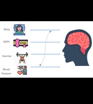 운동, 수면, 혈압 등의 생활요인이 뇌의 글림프 시스템 기능에 영향을 미치는 개념도 . 규칙적인 유산소 운동과 충분한 수면은 글림프 시스템을 활성화하여 뇌에 축적되는 노폐물(예: 베타 아밀로이드 단백질)을 제거하고 뇌 건강을 증진시키는 것으로 보고됩니다.