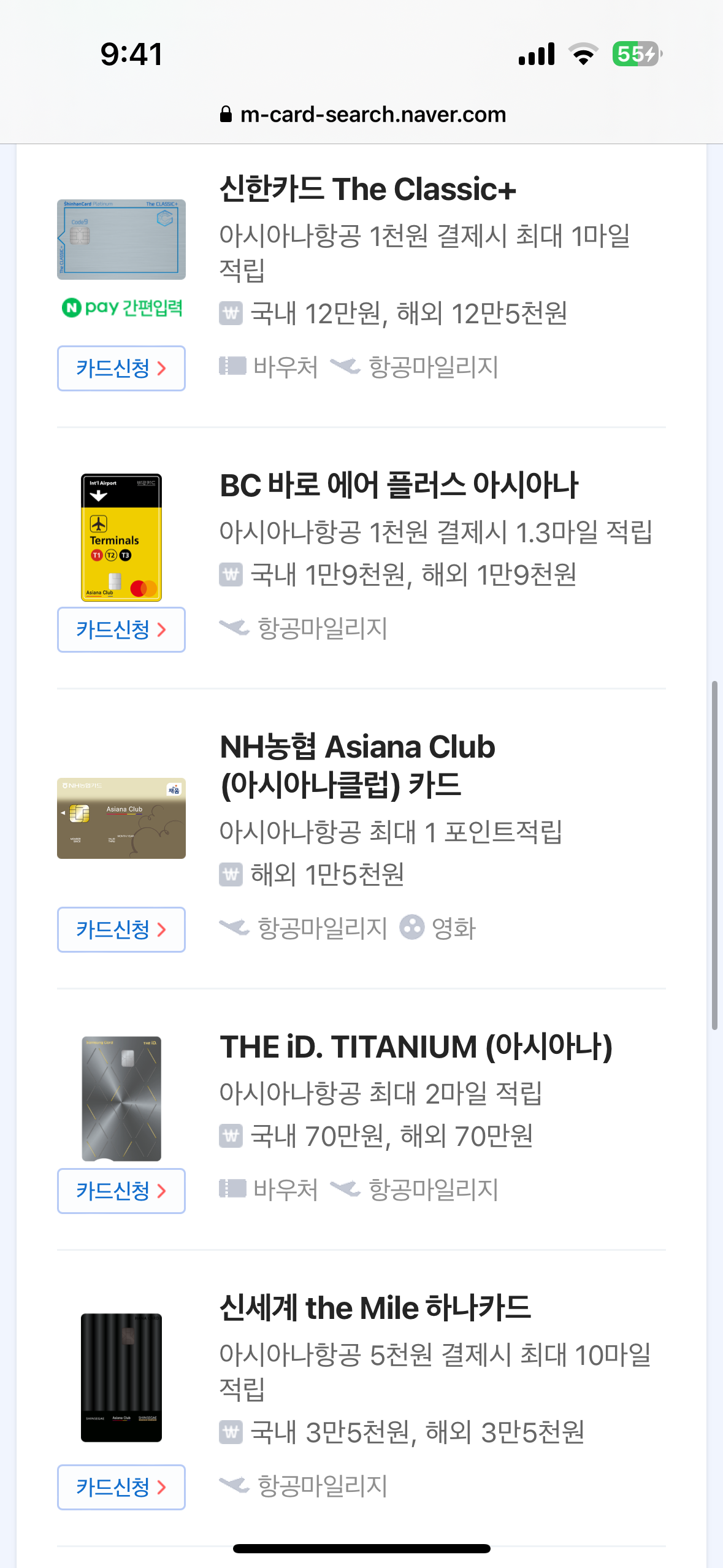 7) NH농협 Asiana Club 카드