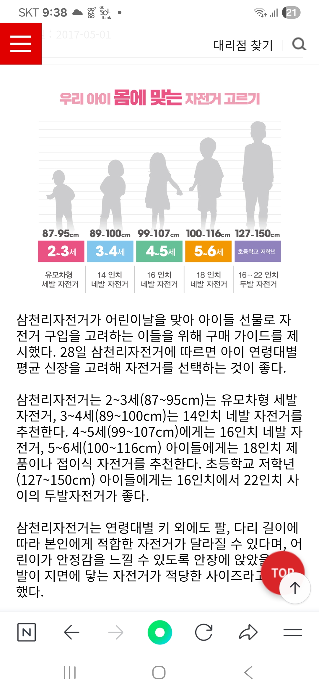 참고 자료: 한국 Trek 바이크 공식사이트 어린이 자전거 가이드  ; 삼천리자전거 어린이 자전거 선택 요령  ; 이데일리 뉴스 – “어린이에 맞는 자전거 고르기”  .