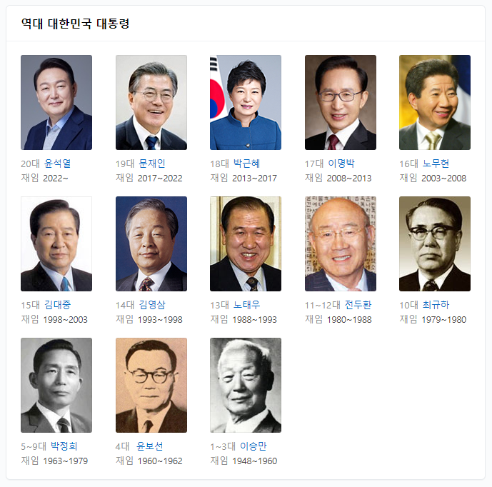 이번에는 모든 대한민국 국민이라면 한 번쯤 궁금할만한, 역대 대한민국의 대통령 프로필 학력 출신 고향 등을 상세히 알아보고자 합니다. 참고로 대한민국 건국 이래 이승만 대통령부터 현재 윤석열 대통령까지 총망라한 자료입니다.