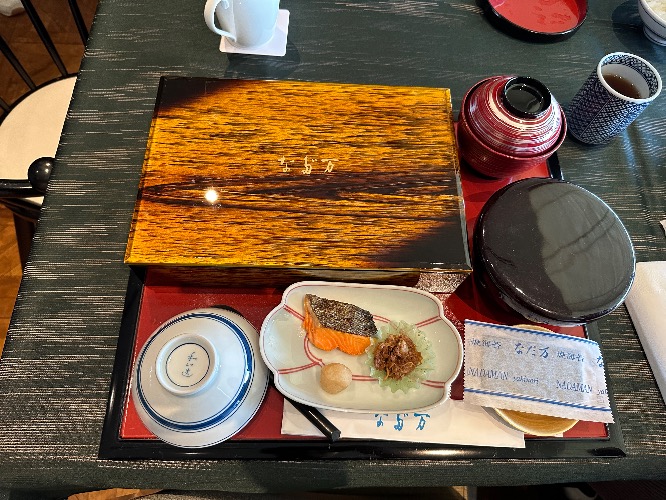 기본적으로 일본 전통 조식 메뉴(밥, 미소시루, 구운 생선, 달걀 요리, 절임류 등)가 정갈하게 제공됩니다. 식재료 상태가 매우 신선하며, 계절에 따라 생선과 반찬 종류가 바뀌기도 합니다.