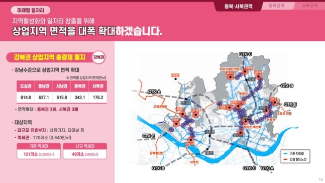 - 상업지역 확대 : 강북권에 부족한 상업시설을 확대하여 강남 수준으로 만들 계획입니다.