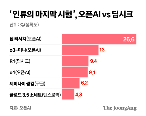 오픈AI의 딥 리서치는 딥시크보다 2.7배 높은 정답률을 기록했습니다.