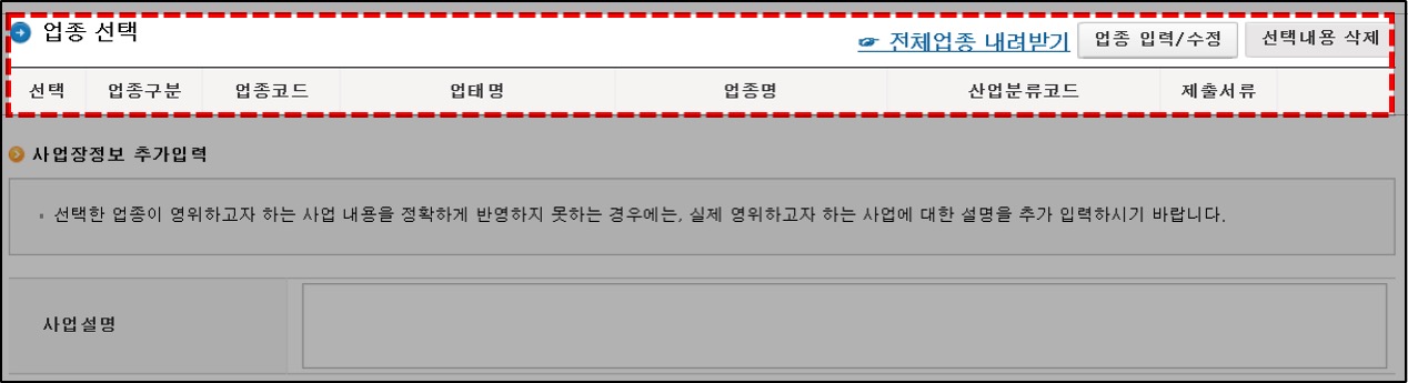 • [업종 입력/수정] 버튼을 클릭합니다.
