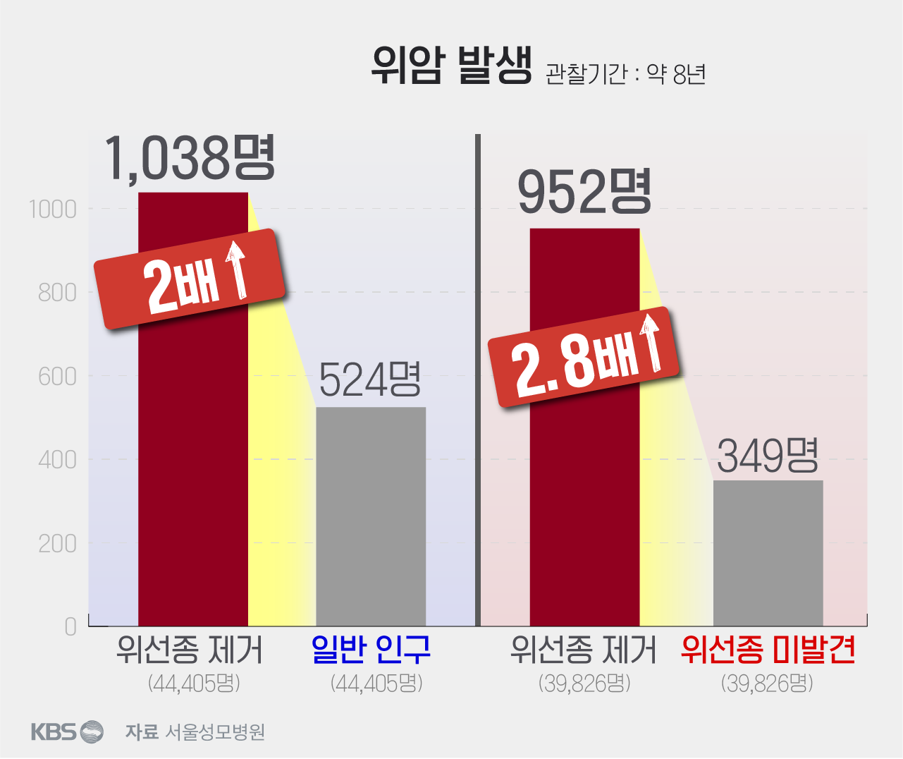 서울성모병원의 연구에 따르면, 위선종을 제거한 사람들은 일반 인구보다 위암 발생 위험이 2.8배 더 높았습니다. 이는 위선종이 발생한 배경에 만성 염증이 있기 때문이라고 합니다. 그러나 위선종을 제거한 사람들은 위암 사망률은 일반 인구보다 50% 낮았습니다. 이는 위선종을 제거함으로써 위암을 조기에 발견하고 치료할 수 있기 때문이라고 합니다.