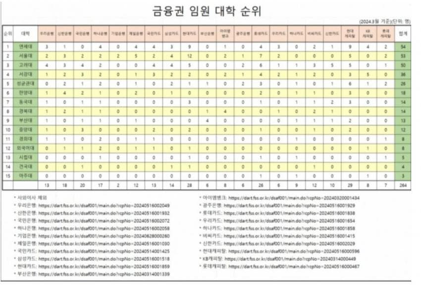 • 이는 금융권 상위 직급에서 특정 대학 네트워크와 학벌 중심의 구조가 여전히 강하다는 것을 보여줍니다.