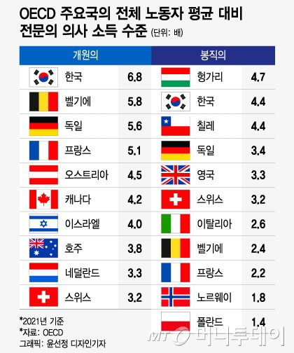 치과, 한의학, 약학 등 다른 의료 직종과의 수입 격차가 줄어들고 있습니다.