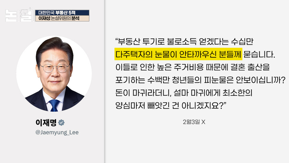 | 이재명 대통령 최근 다주택자 투기 근절 포스트에 대한 여론 동향 (0) | 2026.02.15 |